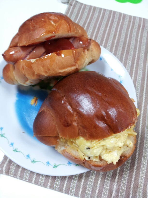 魚肉ソーセージとマヨをを丸い食パンではさんだもの。