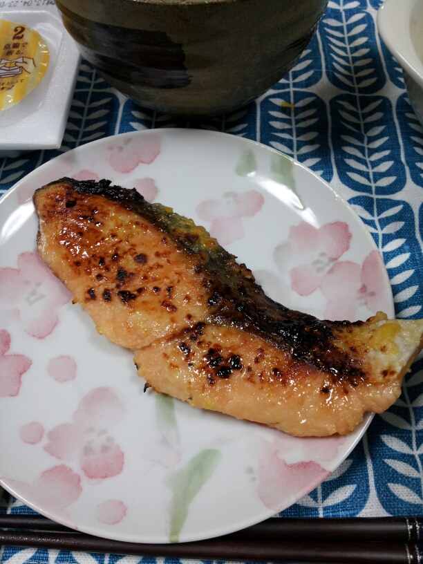 こちらは鮭に味噌を塗りこんで置いたものを焼いてみた。