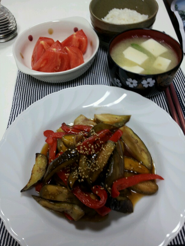 ①焼き茄子とパプリカの甘酢あん