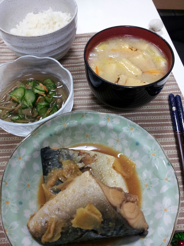 鯖の味噌には生姜たっぷりめに。