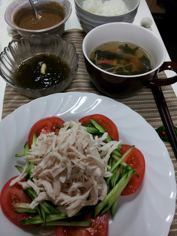 中華スープはささみを茹でたものを使用。