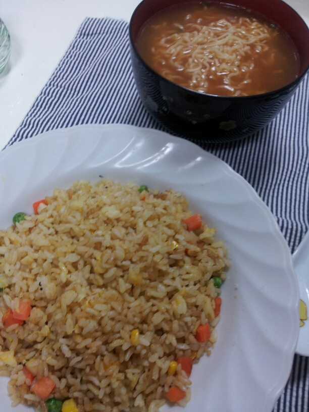 なので、お風呂に入っている間に、パラパラ炒飯と、ごめんなさいのインスタント味噌ラーメン。