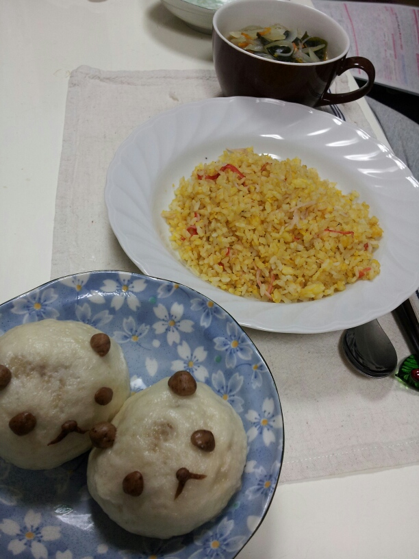 生姜たっぷりの中華スープの生姜はちょっとパンダ豚まんであまっちゃったから。
