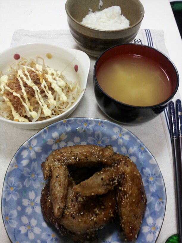 手羽先も上げてタレに和えるだけ、黒コショウが効いていておいしい。