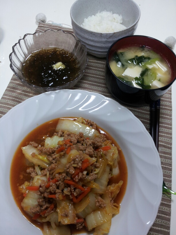豚ひき肉を少し残していたので、たっぷり白菜を使って、