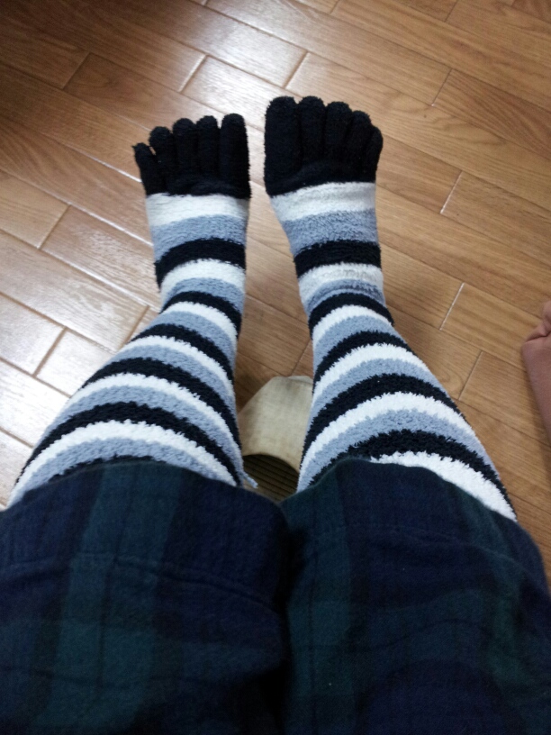 なので、先にお風呂!お風呂出たら即効でこのもこもこ5本指靴下を装備☆