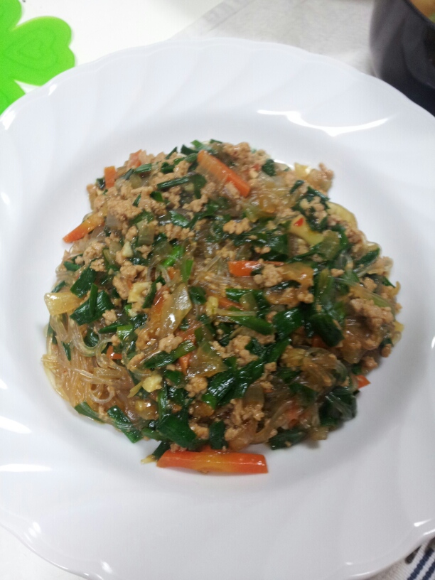 ①ニラたっぷり麻婆春雨