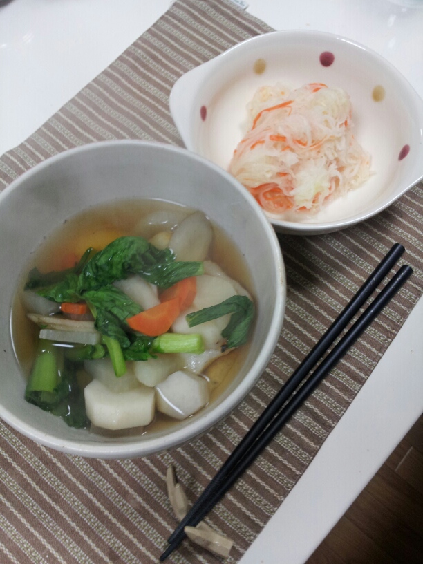 ちなみに旦那さんの実家はおすましに水菜というシンプルなもの。