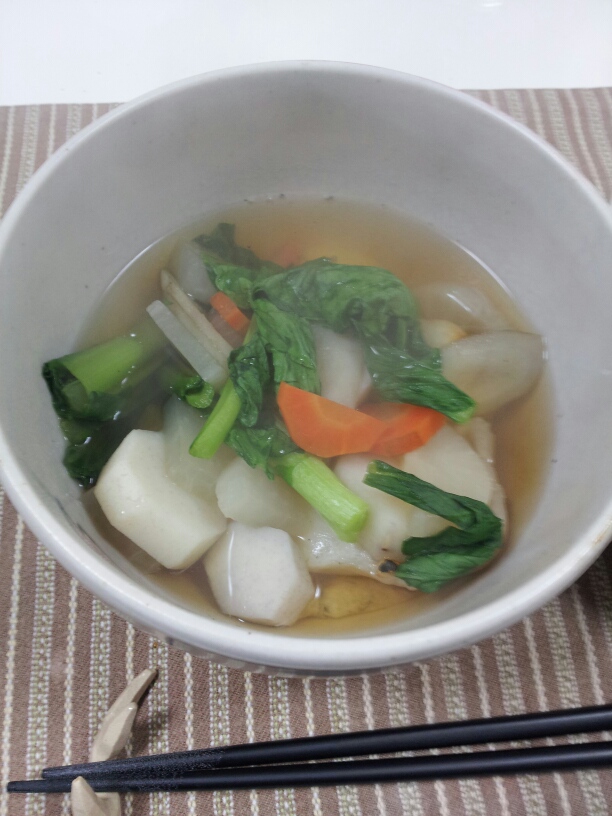 具は里芋、大根、人参、ごぼう、小松菜、かまぼこで醤油ベースのおつゆです♪