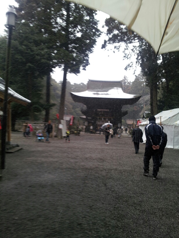 お昼は晴れ間もでていたのに、参拝する頃には雪がかなり降っていました(汗