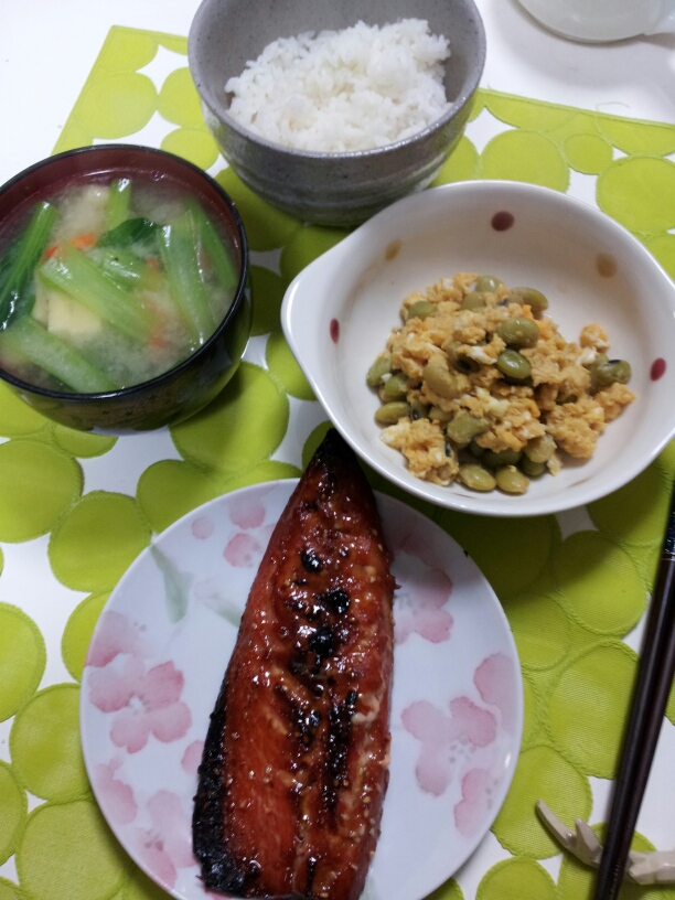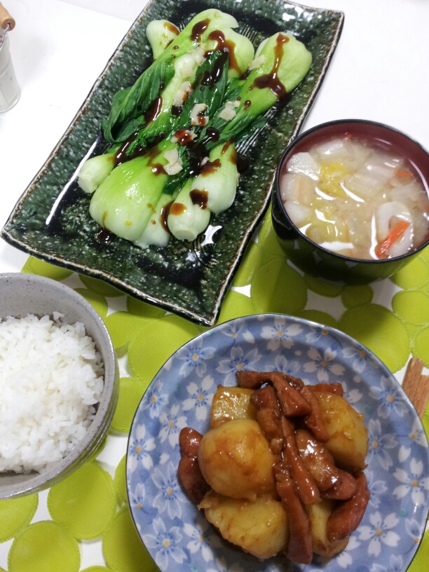 お野菜を摂っておきたかったので、小松菜たっぷりのお味噌汁。