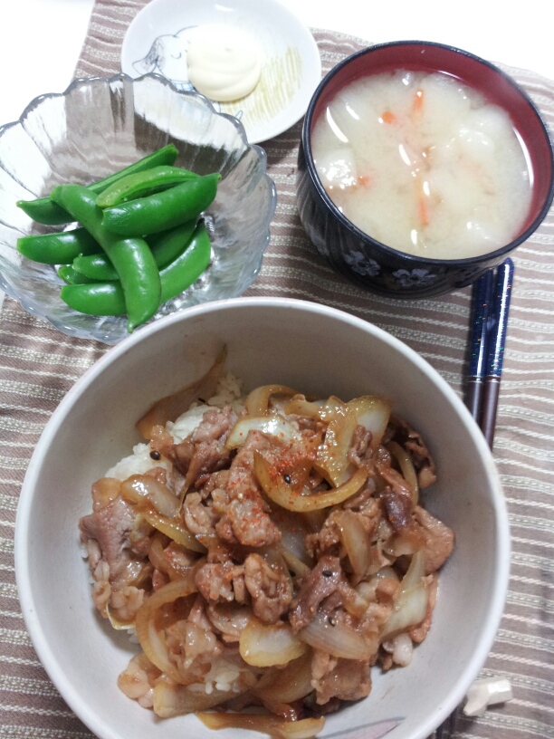 ①生姜たっぷり豚丼