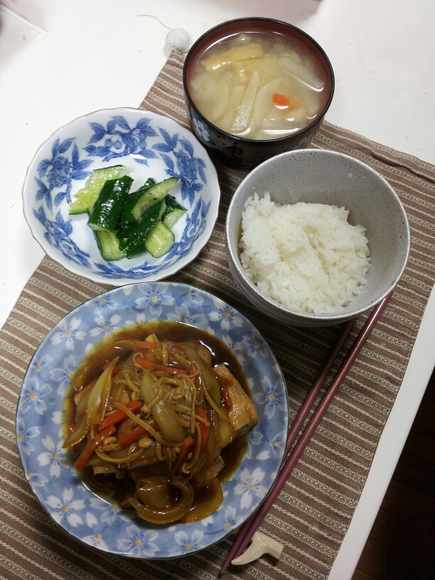 一応、できるだけ、主菜、副菜、汁ものの3品は作るようにしてる。
