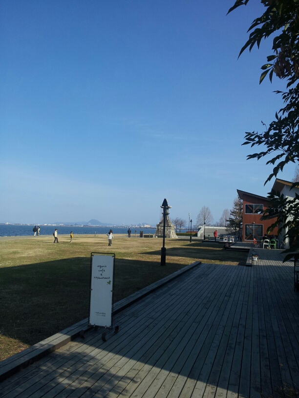 湖岸に4件程おしゃれCaféが並んでたっている。