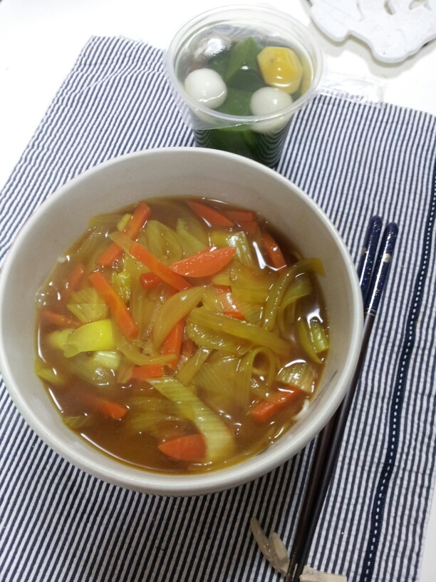 普通のにゅうめんでもなと思って、カレーうどん風にしてみた。