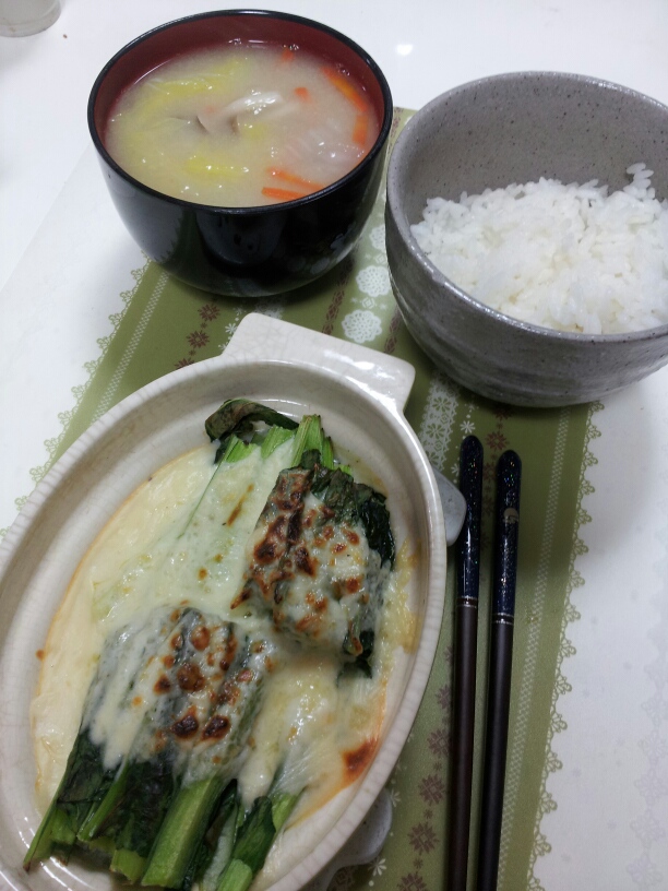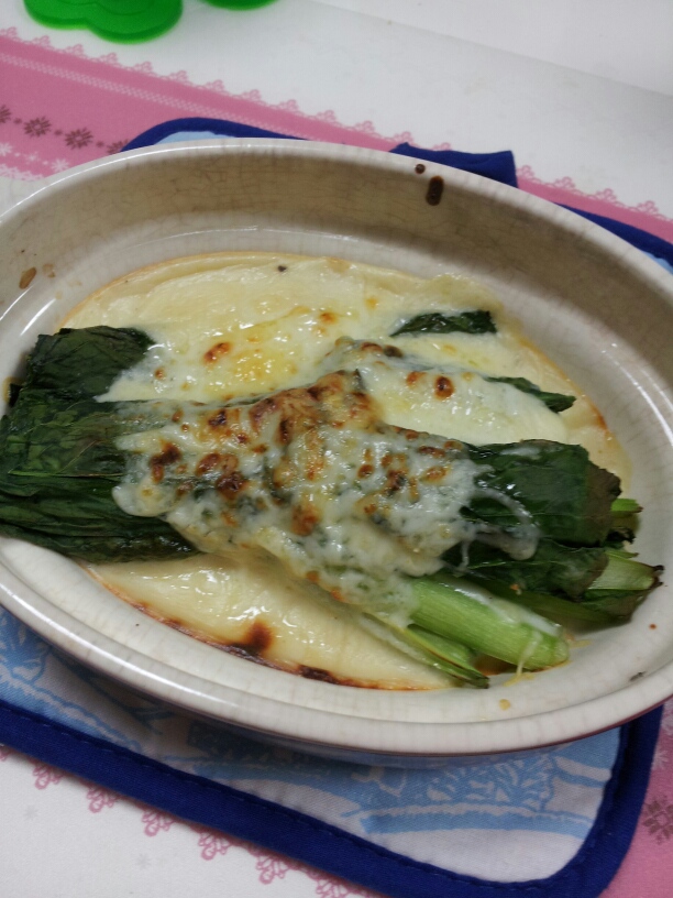 ホワイトソースを和風にして小松菜と合わせてみたらなかなかおいしくできたよ♪