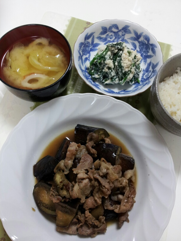 ①茄子と豚の生姜風味