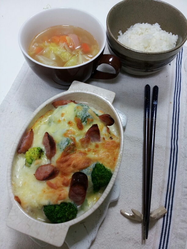 こちらも本当はコンソメスープの素でポトフ的なものを作ろうと思ってたんだけど、
