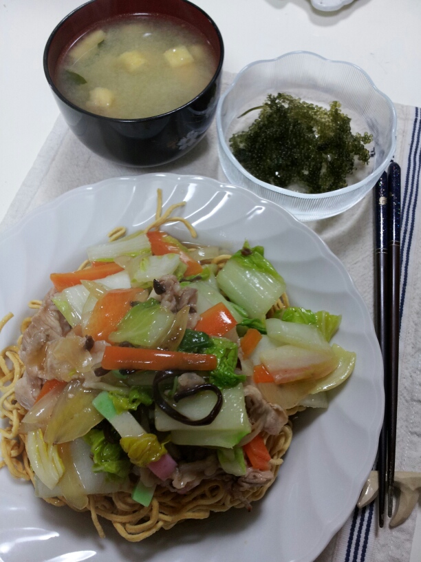 ①野菜たっぷりあんかけ揚げそば
