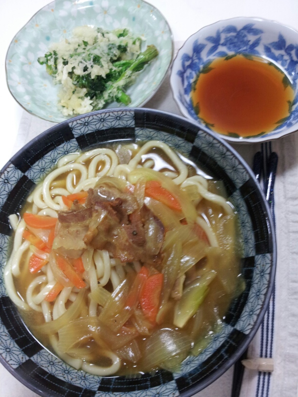 写真のカレーうどんは旦那さんの。