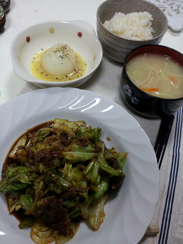 キャベツ、ピーマン、牛肉バラ(ホントは豚)