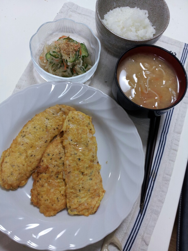 今日は食材がなくって一品一品が質素な感じだし、量も少ないので、4品頑張った!